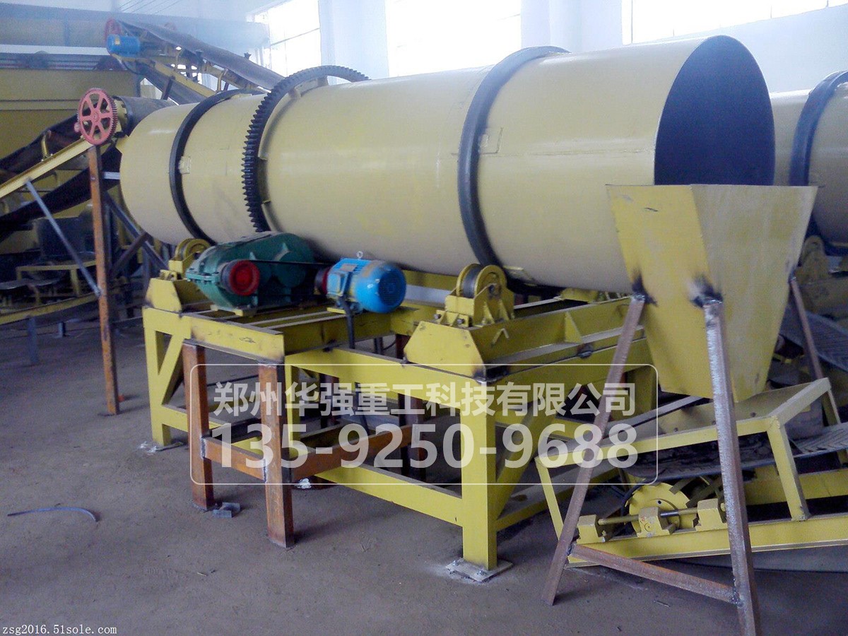 3.后處理:進(jìn)一步對(duì)堆肥成品進(jìn)行篩分,篩下物根據(jù)水分含量高低分別進(jìn)行處理。篩下物圓盤(pán)造粒機(jī)造粒造粒后,送入華強(qiáng)重工有機(jī)肥專(zhuān)用烘干機(jī),進(jìn)行烘干,按比例添加各種添加物后攪拌混合后制成成品,進(jìn)行分裝,入庫(kù)待售。篩上物返回粉碎工序進(jìn)行回用?! ?/p>